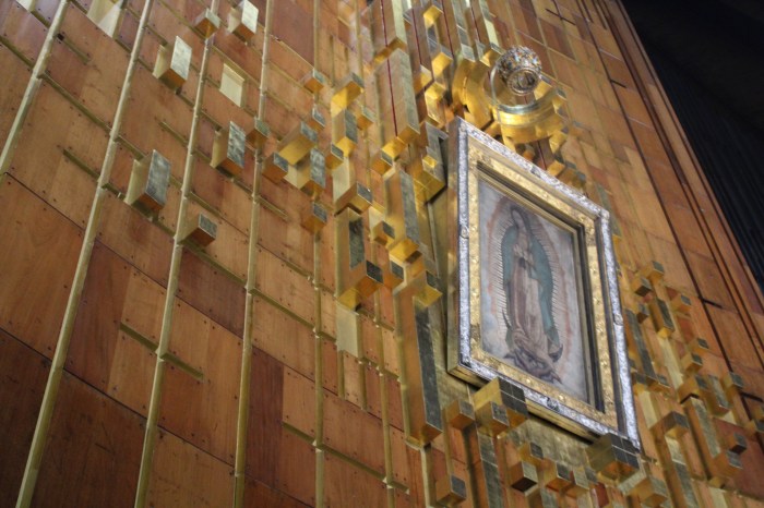 Para ver la tilma que contiene la imagen de la Virgen se tiene que pasar por una cinta transportadora ya que no se puede parar a verla.